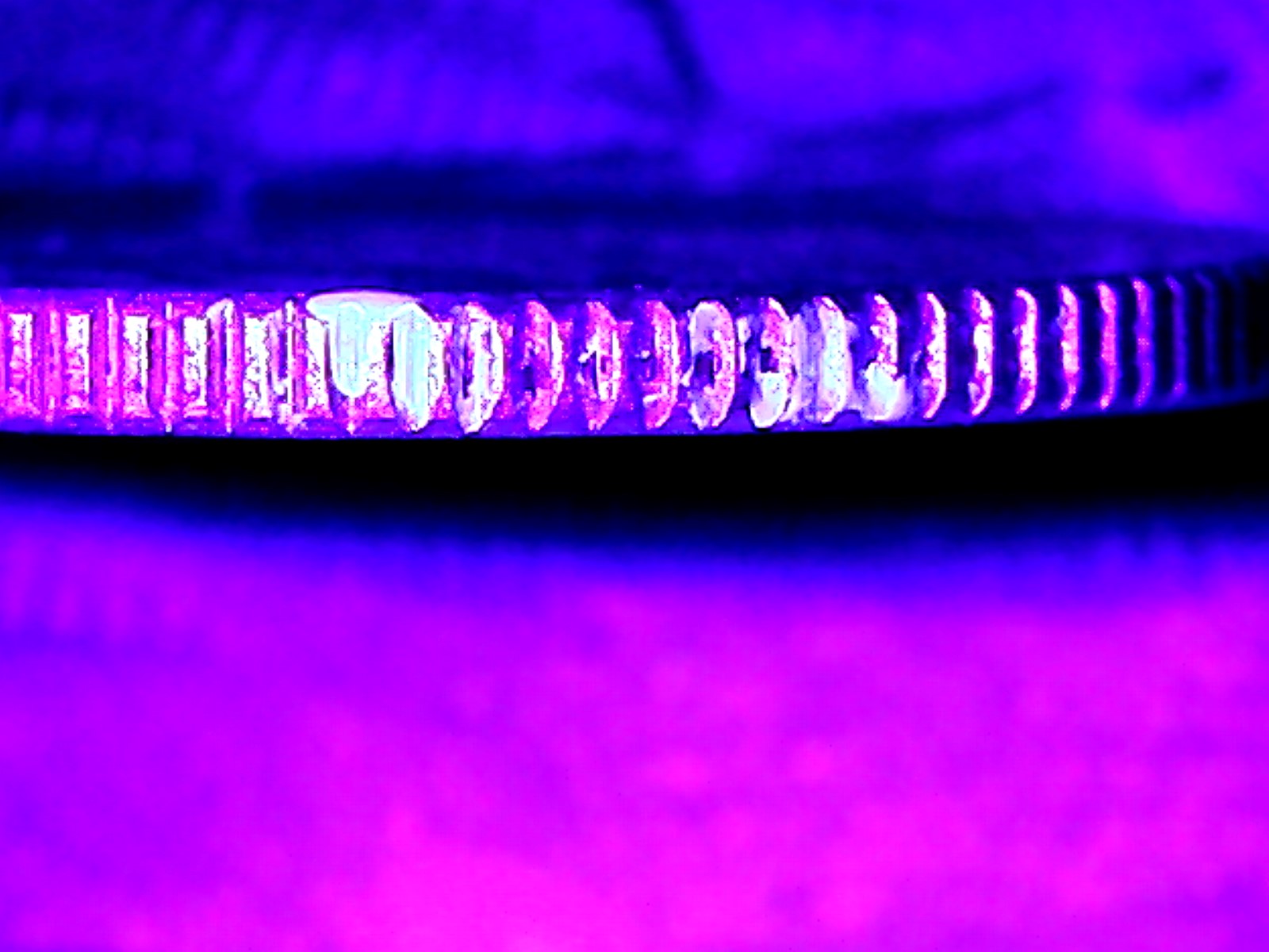 Totally agree on what you're saying about adhesive. But do you think an individual that would try to defraud someone, really think about gases from my adhesive. And as far as the coin markers are concerned it is a water-based clear luminescent. Even okay for human consumption. And from what I can understand the human touch can do more damage than this stuff. And if you don't like it just sit the rim in some water and it will dissipate without harming the coin. Here's another example of coin marking on a 10th ounce liberty.:blackalien: ct10-22-5.jpg ct10-22-7.jpg