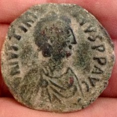 After visiting Istanbul and Justinian's great church, the Hagia Sophia, I had to get a gold coin of Justinian. Justinian - AU Solidus Obverse: Helmeted and cuirassed bust facing three-quarters to right, holding spear over shoulder and shield DN IVSTINI-ANVS PP AVG Reverse: Angel standing facing, holding jewelled cross and cross on globe, star in right field VICTORI - A AVCCC B (Oficina B) CONOB in exergue (Constantinople mint) Struck: AD 527-537 Size: 21mm Weight: 4.43gm Catalog: Sear 137