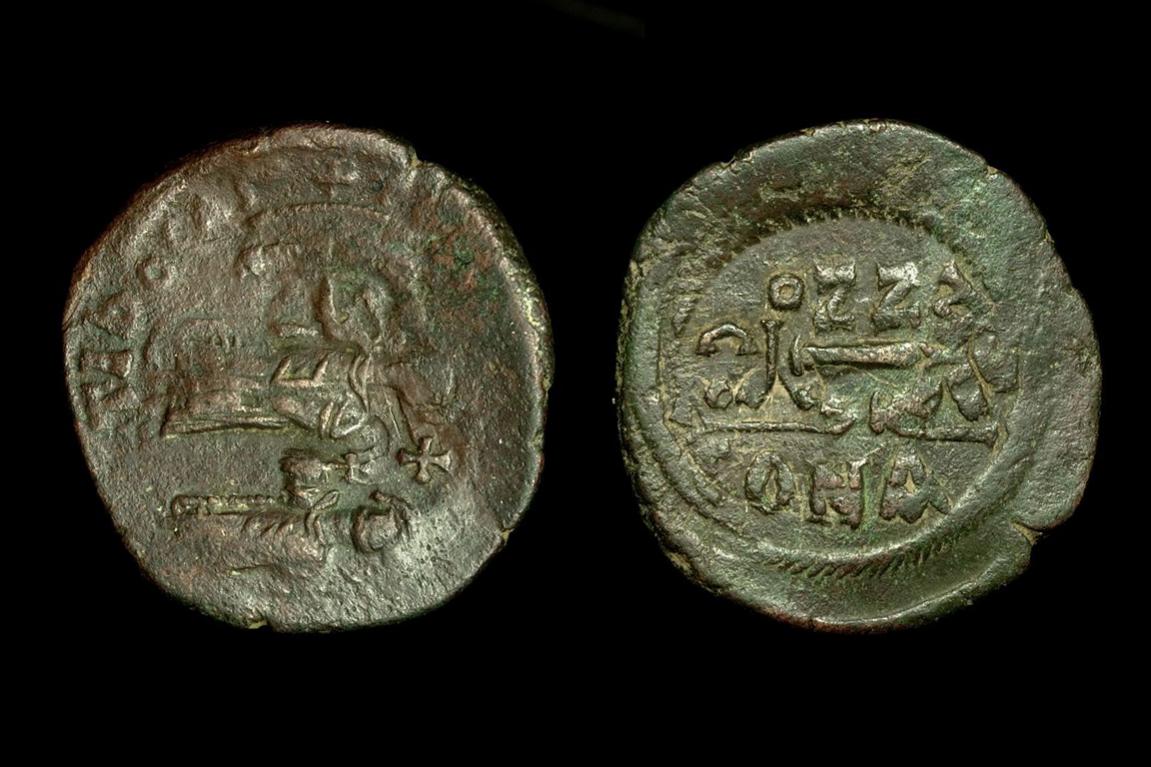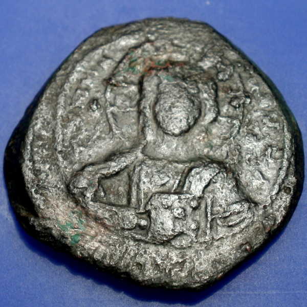 I am not a big collector of Byzantine but buy some when they appeal for some reason. I always like odd coins so I find appeal a few years after the OP coin when those huge M coins started diminishing in size on a regular basis. To keep up with changing standards many coins were trimmed to the new weight standard and overstruck with a new design. There are issues that are rather rare with no signs of being overstruck but some coins are easier to read than others. This Focas 40 nummi (XXXX) year IIII is struck over Maurice Tiberius year XIIII. Both are Constantinople mint dies. The clipped flan is obvious. My favorite is this Heraclius and son overstruck on a Focas (again both Constantinople) but there is a bold TIB at obverse left making me wonder whether that is what remains of a third type. It seems too bold to be the under-undertype but I can not explain it otherwise. I particularly like the way Focas' head appears peering over the bodies (crosswise the way I am showing it). These coins are messy, ugly and fun.