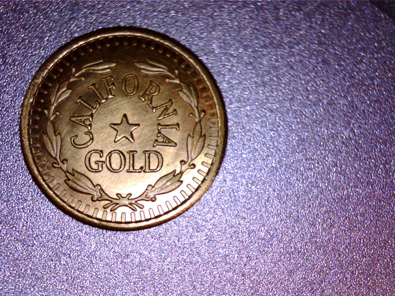 There is one description in my reference that is a fairly close match to your token, although the weight seems way off. My reference does not have photos, just written description. Weight is given as 4 grains for a gold 10 carat half, and as 8 grains for a base metal plated one, with weights for other sizes being proportional. 1.8 grams equals about 27.78 grains, so the weight is over 1.7 times what it should be for a dollar denomination. The description that best describes what I see in your photos is in the token series, type no. 34 (Small California and Territorial Gold Coins by R.H. Burnie). OBVERSE: Large, stern, aggressive Indian head with swept back feathers in headdress, with the ear not covered by headdress. Thirteen medium sized stars around head; date under head. Heavy denticulated border both sides. REVERSE: California (circular), a star, Gold (horizontal) inside a neat wreath with 16 berries, single loop bow know with one tie, two long and two short ribbands. Letters and numerals all well engraved with complete serifs. Lettering large, star large. No denominations on this type. Subtype No. 6 for one dollar rounds, all dates. I will leave it up to you if you feel this is a match or not, but this was the only listing that seemed to fit even remotely close.