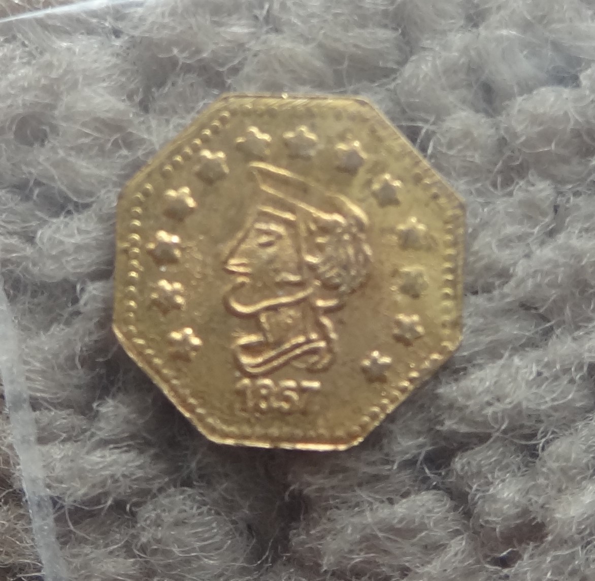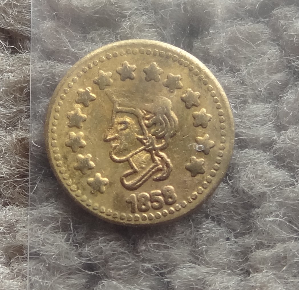 Thanks Charles for the confirmation. It was in a holder but some fly by night grading service NPO Numismatic Professional Grading labeled 1860 California Gold Rush Token MS65.