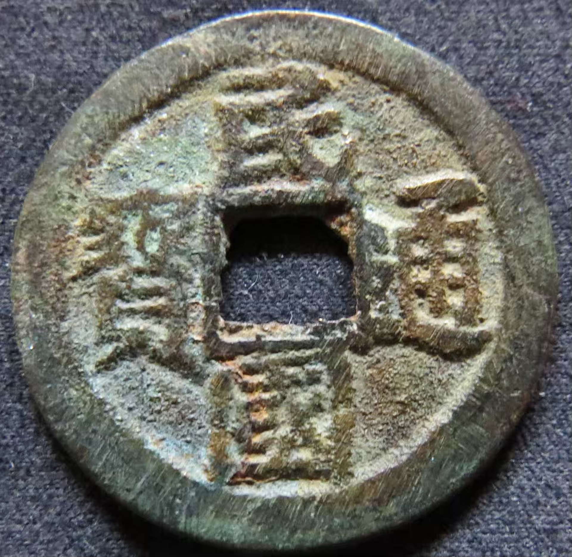 I'll definitely give it a look! Thanks I believe 12:00 North reads 當 or "be" in Chinese. Bottom character is 十 or ten. This is a 10 cash, thus 當十 dang shi (be ten). It is definitely cast and the calligraphy aligns with genuine specimens so.