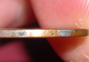 Is that ground off or is the silvery part added on? I thought wheat cents were a solid alloy and not clad?