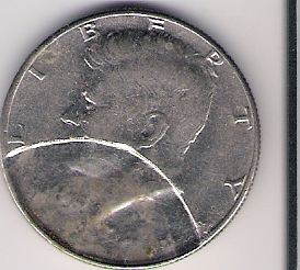 I've seen uncounted numbers of clad coins (including half dollars) struck through detached clad layers. The result is a mushy design that tends to be more complete than what we see in the coin under discussion. That's why I've hedged my bets on the identity of the thin disc that generated the strike-through.