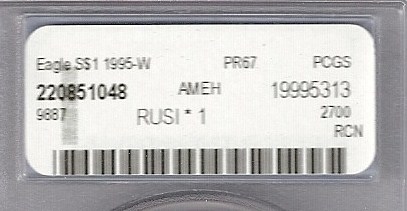 I recently received my 1995W Silver Eagle and, under the Heritage Auctions label, I found this label on the reverse over the standard PCGS label. I have no idea who put it there or why. Can anyone identify it and tell me what it means? Thanks for all of your help.