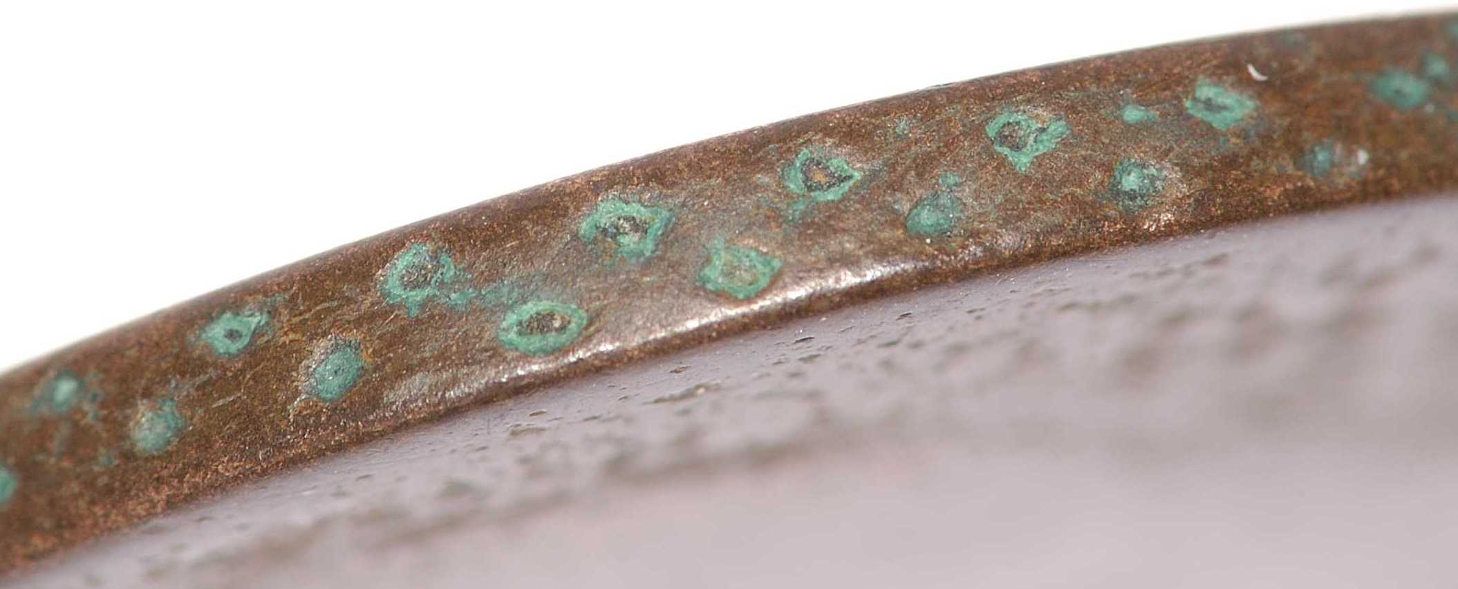 I have a copper coin that is very badly worn. The only detail on the coin that can help me determine its origin it its edge. Attached is a picture if the edge. Does anyone have any ideas.