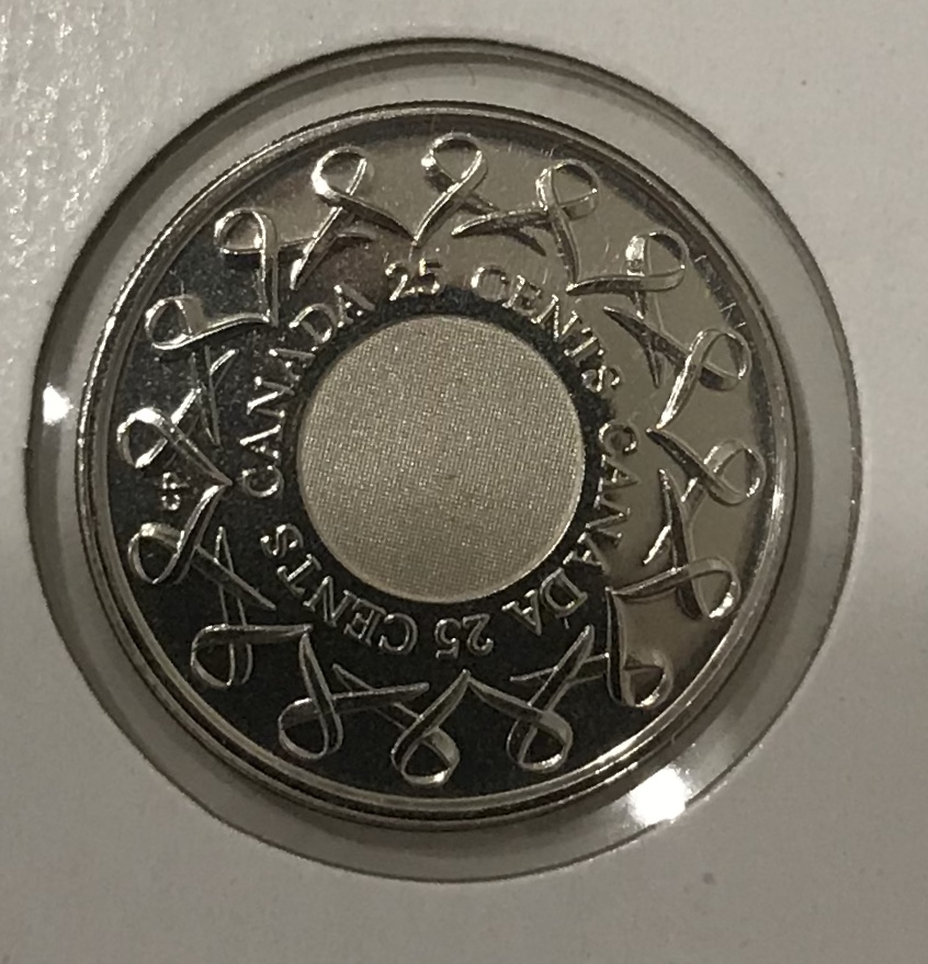 I originally thought it is just missing the pink sticker that should be in the middle. I think the ribbon design is different than the circulation coins though. Could be something.