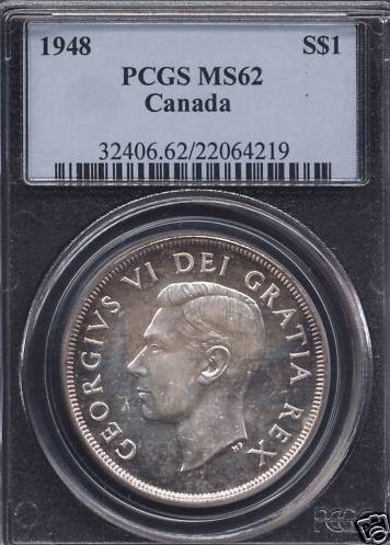 The Coin Geezer apears to have a nice set of Canada dollars. Here are a few Canada coins in NGC holders. I was hoping that the 1942 5-cent coin would get a MS65 which would have propelled it to a much more valuable status acording to the catalog.
