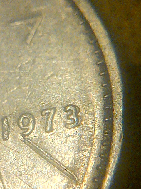 this is the first time i see this on a 73 dime,,too bad its falling apart