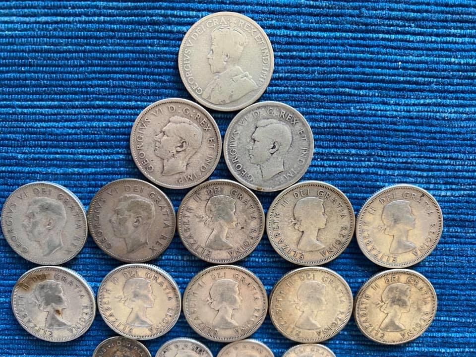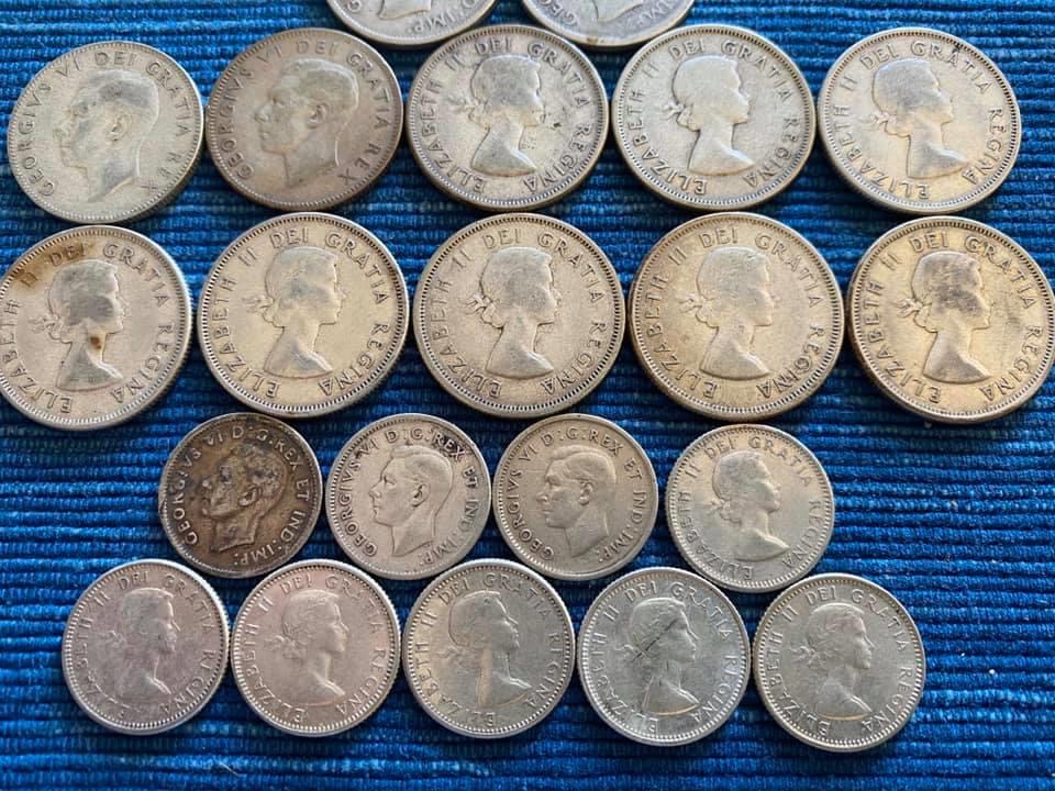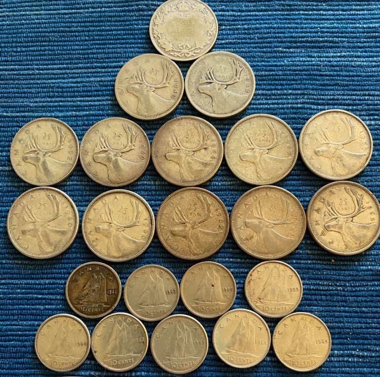 ALL SOLD: Canadian Silver Quarters & Dimes for sale. Offering $4.25 in Canadian silver - 13 quarters 1929-1963 and 9 dimes 1941-1964. Canadaian coins of this date range are composed of 80% silver. Offering the group for $50 shipped via USPS Priority mail. Please IM if interested.
