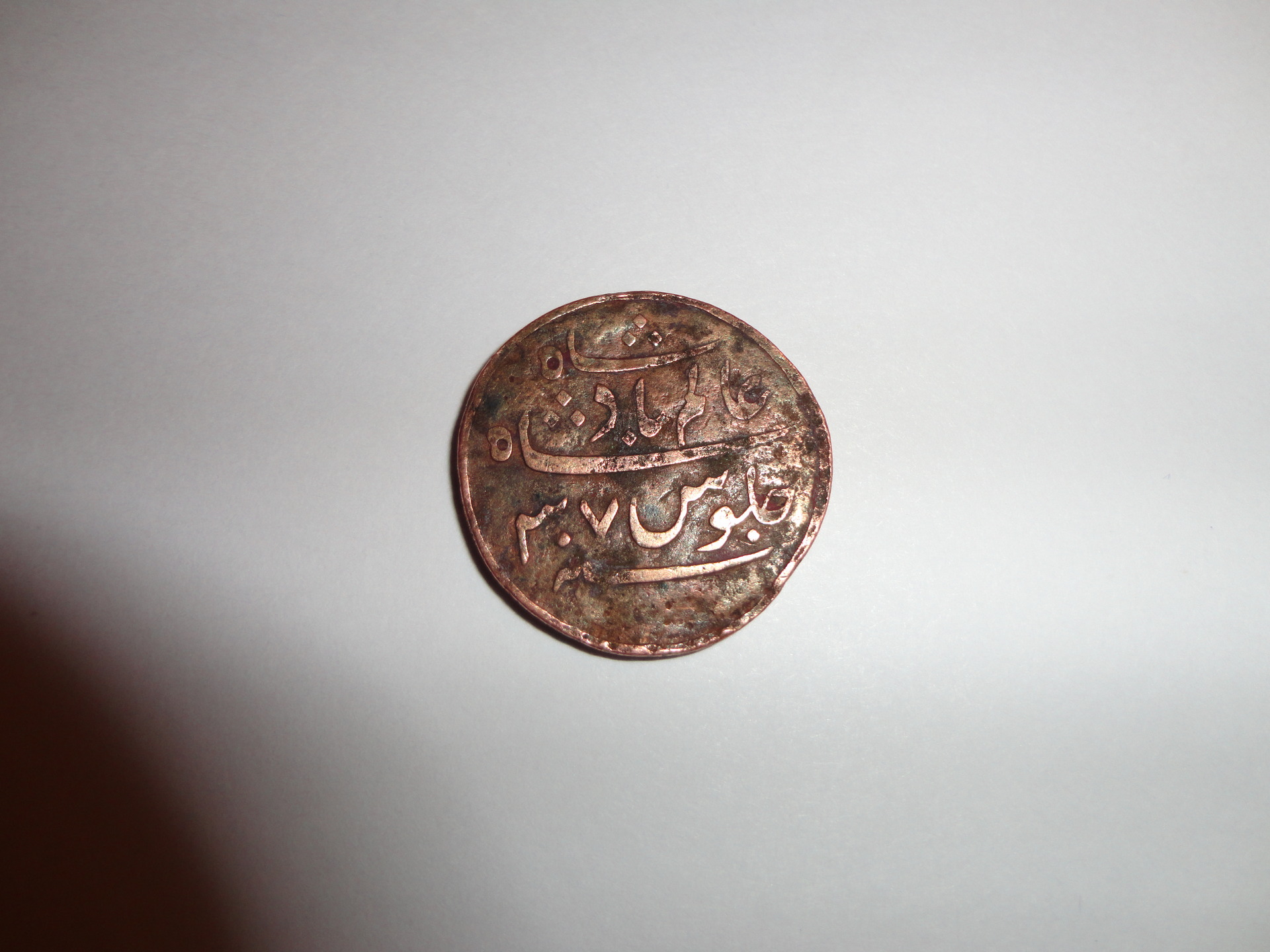 I'm spotting some very similar coins while fishing around the Web, all listed as of the Bengal Presidency. Images I see suggest your reverse is upside-down. See: https://aliqizalbash.wordpress.com/...-ah1759-1806-ad-1-pice-1210-ah-1796-ad-km-53/ http://www.ebay.com/itm/BENGAL-PRESIDENCY-SIKKA-ONE-PIE-EX-RARE-COIN-W-61-/310887705256