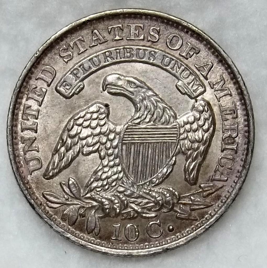 The weight and diameter are correct, so I've no misgivings about the coin's originality. The seller is an attorney ... for what that's worth. Now I need to find a quarter to match (in terms of grade). I have the half dollar and half dime, and now the dime. There are 2 different diameters of capped bust dimes, and now I'm wondering about the size of the opening in the Dansco....though this coin may not go into that album and be subjected to scratches from the acetate slide. Nightowl