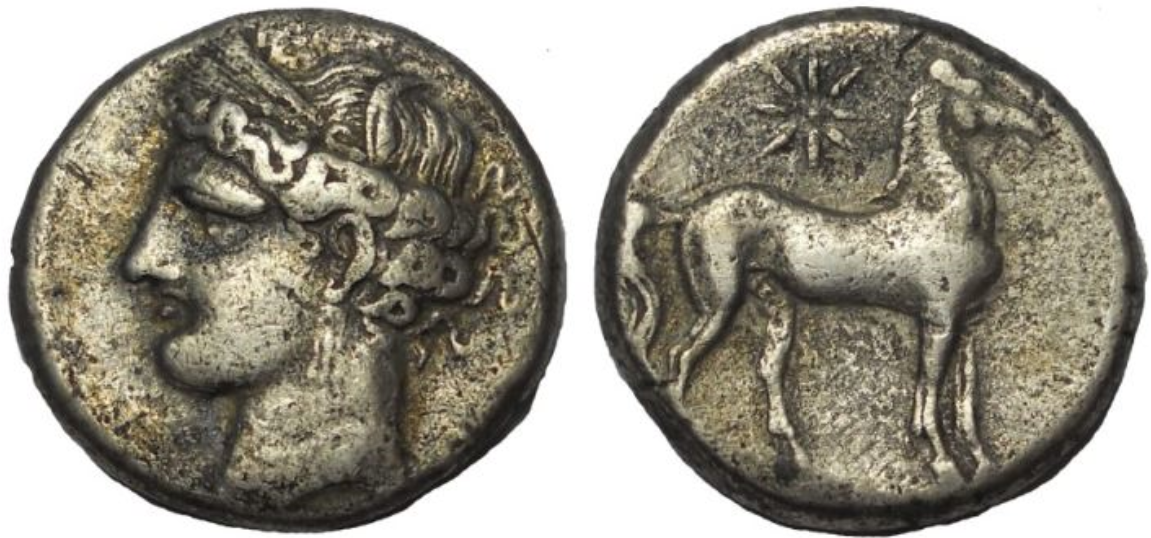 This is a great type - an affordable example from Hannibal's time in Spain. I'm surprised it's not advertised as such more often. (There's also an imitative type in poor style from around the same time which is much less desirable.)
