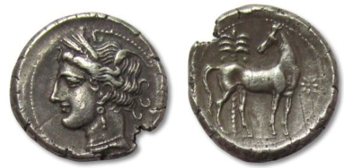 Bought these 2 items on eBay and Künker auctions: a Tunisia banknote showing general Hannibal Barkas (247-183 BC) with behind him the harbour build in a circle with boathouses for the Carthagian warships.(Next to it was another harbour for the commercial trade ships) on the backside 3 Carthago ships. a copper coin with Tanit and a horse and palmtree from Hannibal's period: