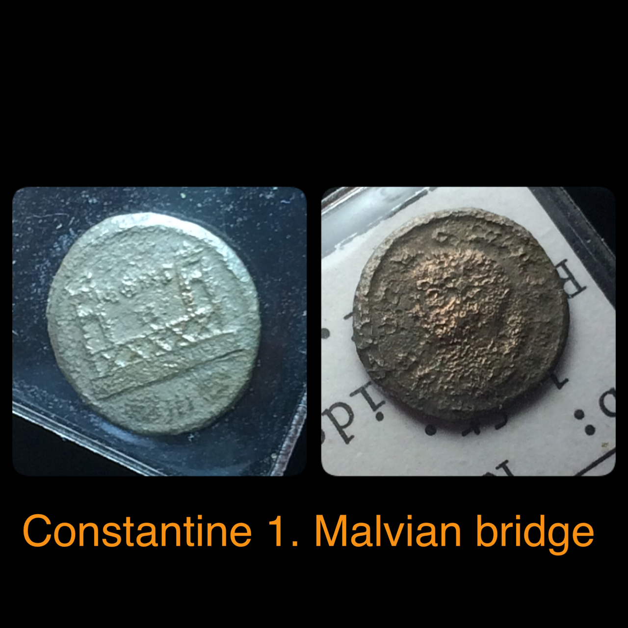 This write-up appears on the splash page of CoinTalk today, so I suspect it will enjoy new life. I enjoyed the OP coin and write-up. As with all things Constantine coinage, I turn to Victor Clark for some great insight. Somewhere I record him as saying, "People who expect to find Christian imagery on bronze coins of Constantine will be disappointed. Of approximately 1,363 coins of Constantine I . . . covering the period of 313-337, roughly one percent might be classified as having Christian symbols.” It seems that the sons of Constantine seemed more eager to exploit that Milvian Bridge moment and its associated iconography on their coins, and it seems that the usurper Magnentius upped the ante with his gigantic Chi-Rho: "My Christianity can beat up your Christianity." Here's my "bridge" coin--a worn version I bought in 2006 from "Silenos Coins," then on VCoins, for $31. At the time, I recorded these notes: Notes: There is much disagreement over what the bridge signifies and the context for this coin’s issue. The general view now is that the coin was a donative distributed to commemorate the formal founding/dedication of Constantinople in 330 AD. However, “LRBC p.25 dates the POP ROMANVS (and the Star in wreath) issue to the Period IV, AD 341-346, after the death of Constantine I AD 337.” Some have suggested that the bridge is the Milvian Bridge where Constantine received his victorious Christian vision. Curtis Clay disputes this reading, arguing that these events would have become a dim memory by 330 AD. Another argument maintains that Constantine wanted to commemorate the peace between Goths and Sarmatians who had fought from the opposite banks of the Danube. Similarly, the bridge might symbolize the unity of East and West, of Rome and Constantinople, and thus the unity of the Populus Romanus. RIC VIII, 21 (C3); Ex: Silenos Coins; 1/06