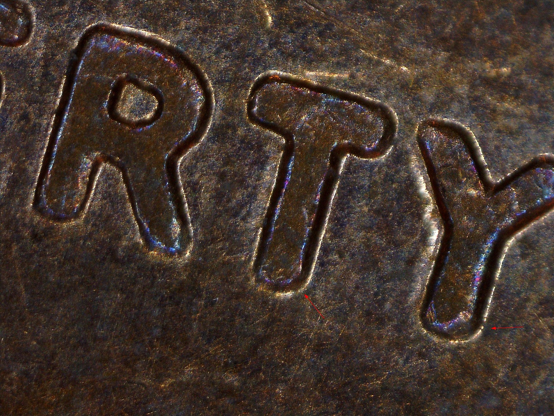 A few areas that look like slight doubling to me. split serifs, notches, and thickened letters on Liberty. But, of course i'm usually just seeing things that are not there. Thoughts?