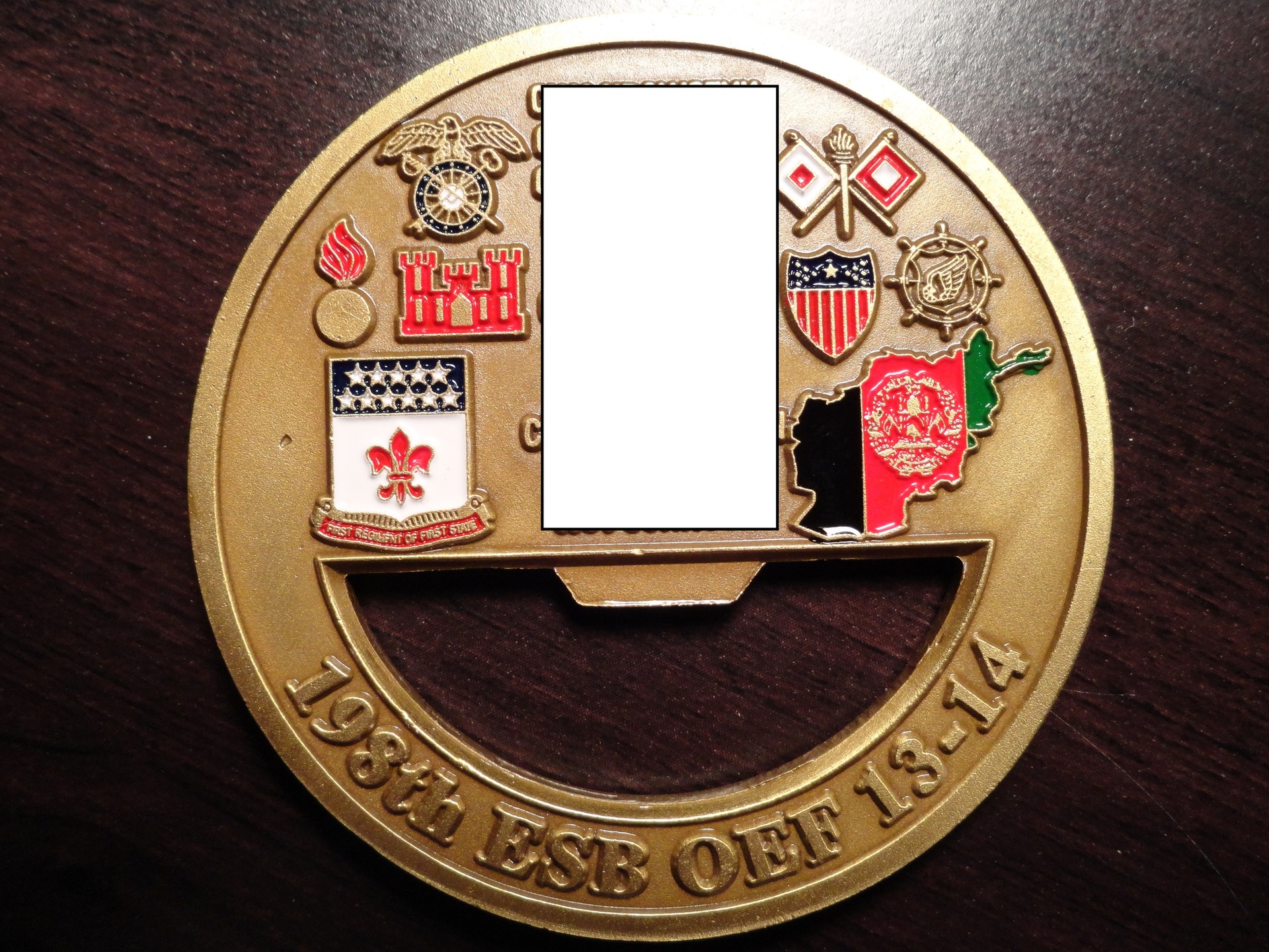 Very glad I stumbled upon this thread. Such beautiful pieces and each has it's own story. Here are the only 3 I own. First received from my father. Retired captain army reserves. This one received for recovering a military ID card in my restaurant lobby. The general and the owner of the id gave me this one. It's the 2nd muns ammo division at Barksdale Air Force Base in Shreveport, Louisiana. Very cool art when the reverse is inverted. Third was a Gift from a Boeing worker for excellent customer service also at the restaurant.