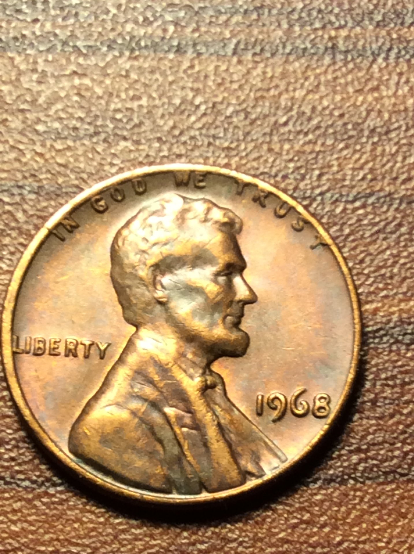 this 1965 wheat penny have missed letters in Liberty and look close at Lincoln face and on his shoulder you will see.