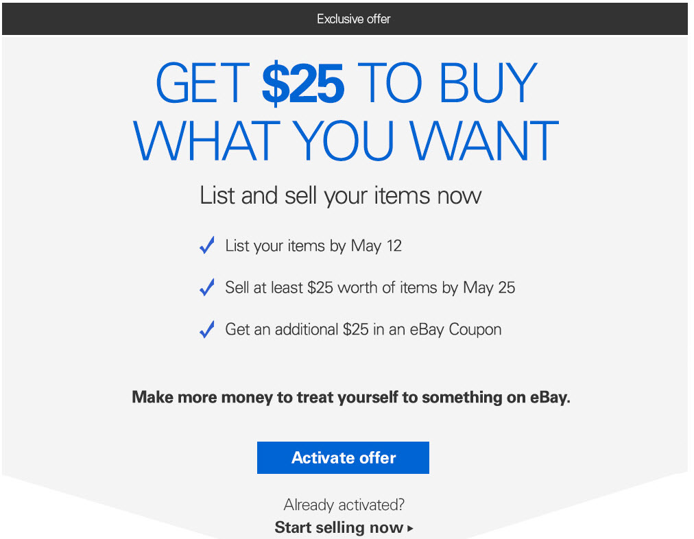 I get these fairly frequently along with the 3x and 4x ebay bucks offers. I think they send them out when you've sold in the past, but haven't for a while. They are trying to get sellers back into listing.