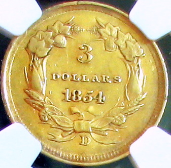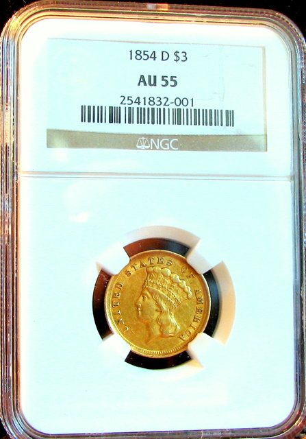 Here are the other two gold coins. The $2 1/2 dollar 1854 was NGC-AU-55. The $1 dollar 1853 was NGC- MS-63.