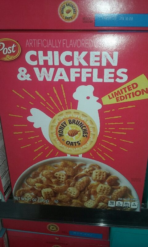 I thought you Photoshopped that but it's real! https://hypebeast.com/2019/3/post-honey-bunches-of-oats-bacon-donut-chicken-waffle-cereals