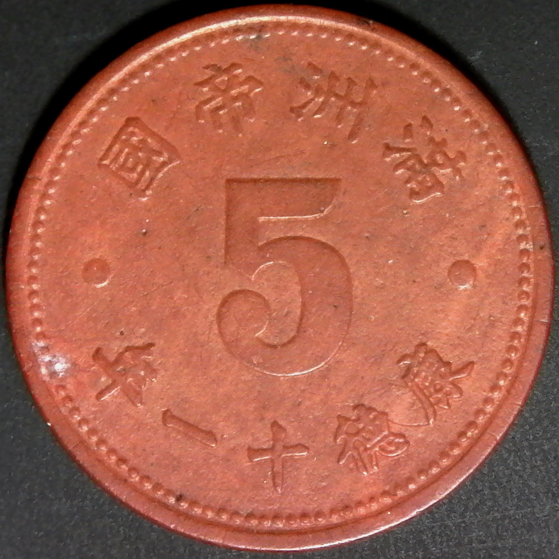China Manchukuo 5 Fen 1944 Red Fiber obv.jpg