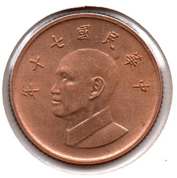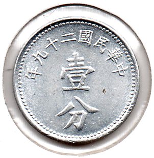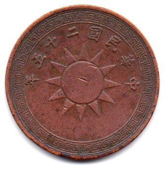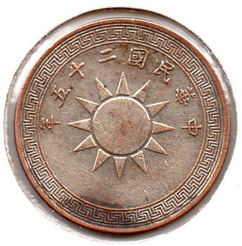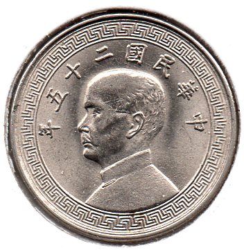 Greetings everyone, I decided to post a few of my Republic of China (mainland) and Republic of China (Taiwan) coins in order to share as well as a reference for those that may be confused by the government that existed in one place then moved in exile to another. Please post you own. Thx, Joe Republic of China - Mainland China (Mainland Republic) - Half Fen - 1936 - Bronze China (Mainland Republic) - Half Fen - 1936 - Bronze with a Silver Wash