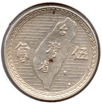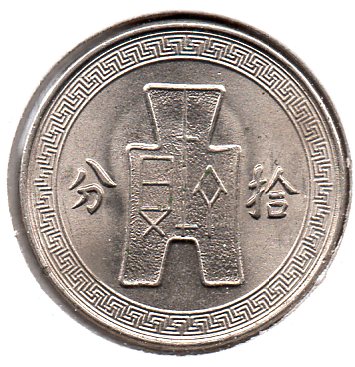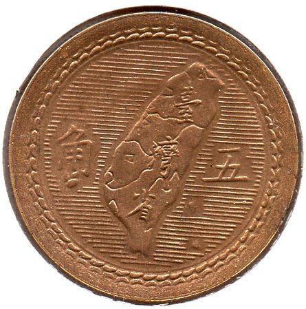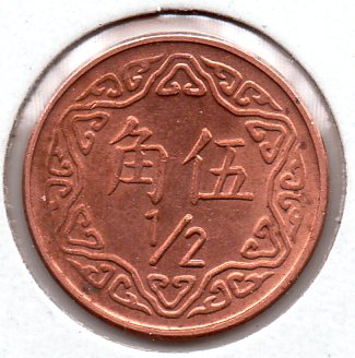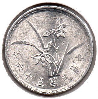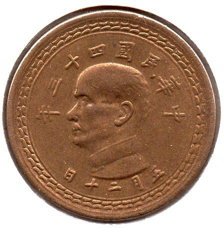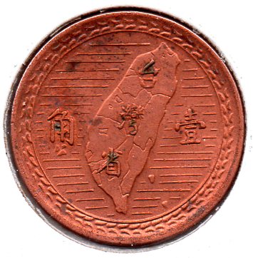 Republic of China - Taiwan (formerly known as the island of Formosa) Taiwan - 1 Chiao - 1949 - Bronze Taiwan - 1 Chiao - 1955 - Aluminum