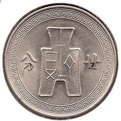 China (Mainland Republic) - 1 Cent - 1937 - Copper China (Mainland Republic) - 20 Cents - 1936 - Nickel
