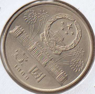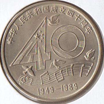 40th anniversary of the establishment of the PR China. 1 RMB. Its current value is about $5 in China.
