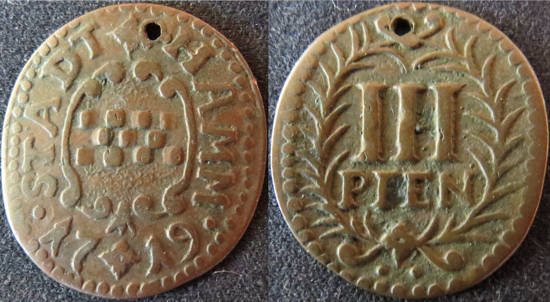 Does Hamm count as a city-state? I think it was part of the County of Mark, but issued its own city coinage. This coin is oddly oval-shaped. I don't think it's just an irregularly hammered piece, as the beaded border follows the perimeter pretty closely. The other images I've been able to find online look much rounder.