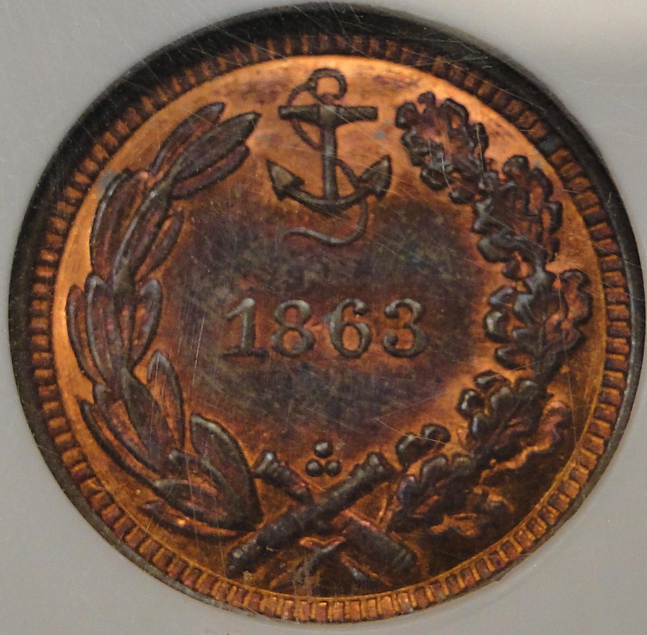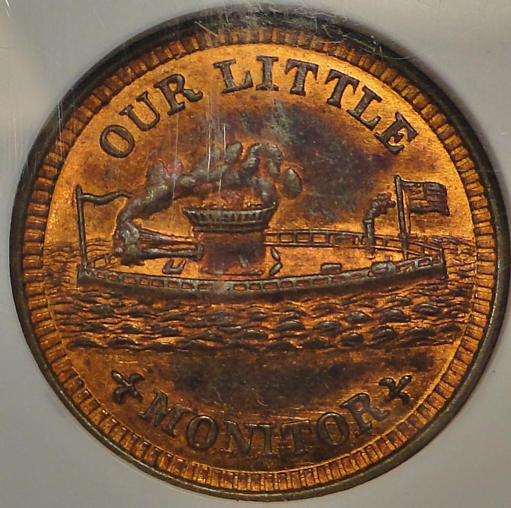 This is one of my monitor CWTs. NGC 65 RB that I think I paid 265 for from a dealer setting up right next to us at a show. The thing never hit the floor! I have another monitor that is a little different than this one in VG and I considered searching out all of them. I saw another nice example at the last FUN show in 65 BN but I couldn't get over all the die corrosion that transfers onto the coin. Although it is a die marker for the variety, it just didn't see dropping a few hundred on a coin I didn't like just because I thought I wanted all of them once. I'm now content to have this nice RB example representing the Monitor holding in my CWT collection. Matt