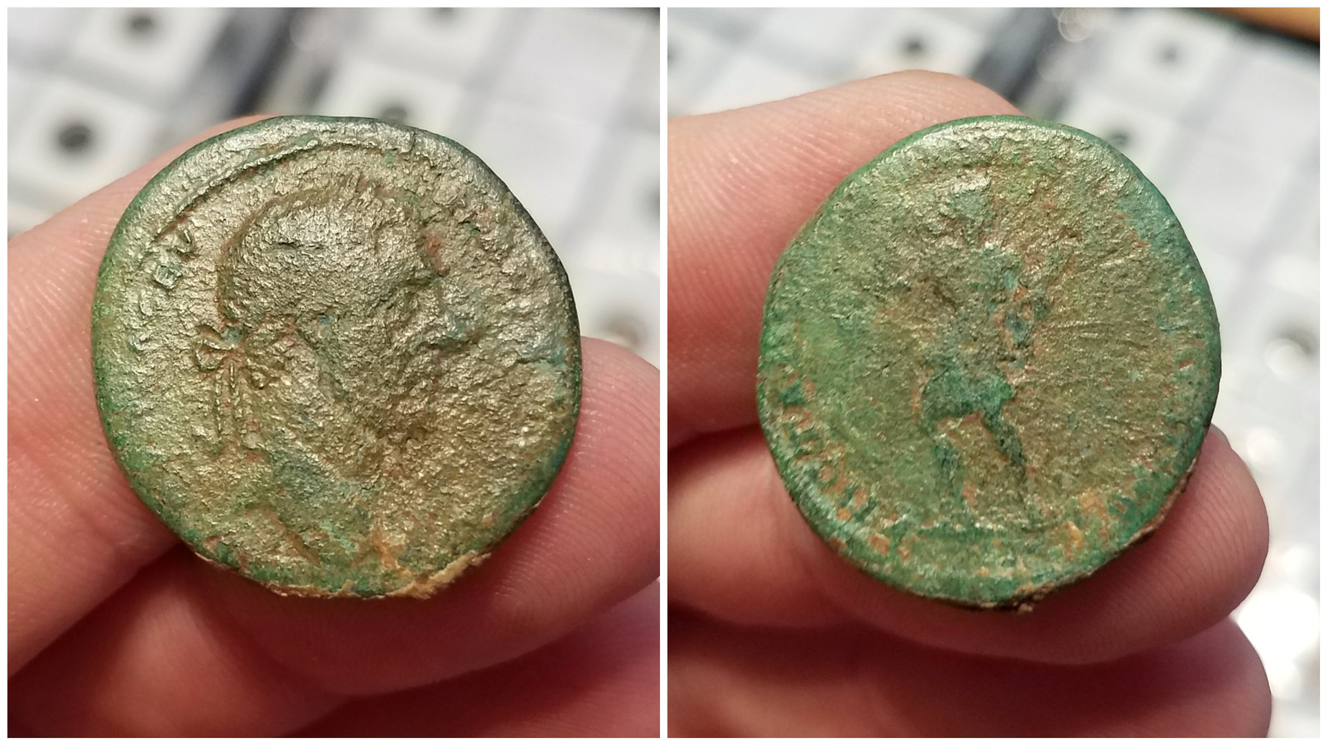 Here's my Claudius quad spot! Claudius, AE Quadrans , AD 42. O: TI CLAVDIVS CAESAR AVG, hand holding scales, PNR in field; R: PON M TR P IMP PP COS II around S C. RIC 91, Cohen 73. 17 mm, 3.2 g.