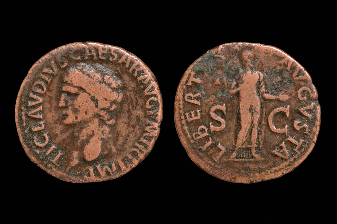 Here is one of my favorite Claudius bronzes: Claudius AE As OBV: TI CLAVDIVS CAESAR AVG P M TRP IMP P P - Bare head left REV: CONSTANTIAE AVGVSTI - Constantia standing left, raising hand and holding spear; S C across fields Struck at Rome, 42-43 AD 12.7g, 25mm RIC111