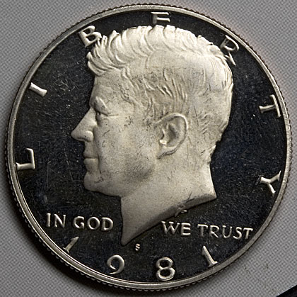 That's my plan. The Kennedy proof, of course, is from circulation, but I'll see if I can find a glossy business-strike with fingerprints first. (This latest batch included two bicentennial halves, P and D, that appear to have been chrome-plated -- they should take fingerprints pretty well.) I've got some gunked-up Memorial cents that I'll experiment on before I do anything to the IHC.
