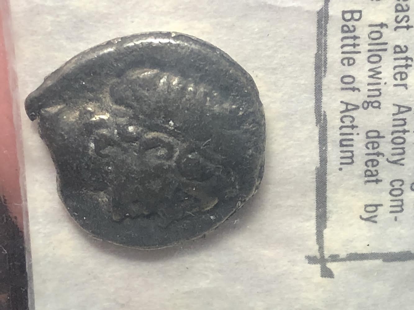 Welcome to the mystery of ancient history! Boy, it's hard to tell with these pics. Could ya take it out of that plastic and get close ups on the obverse and reverse. As well, any chance you have the weight?