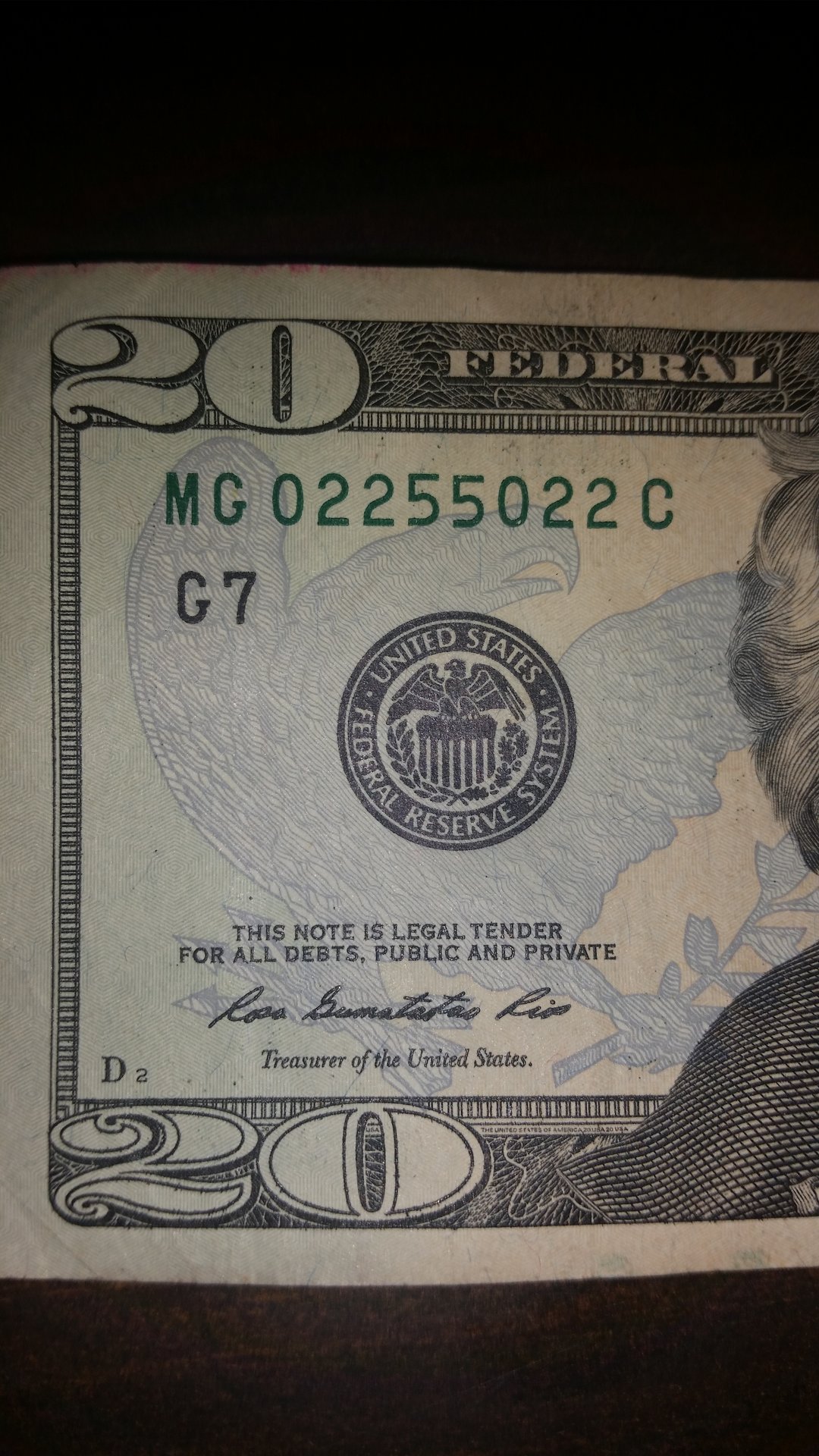 Same here, I don't know values on anything, so I keep what I like Here are a couple of my faves... The five is cut funny on the bottom The 20 I just like the serial number