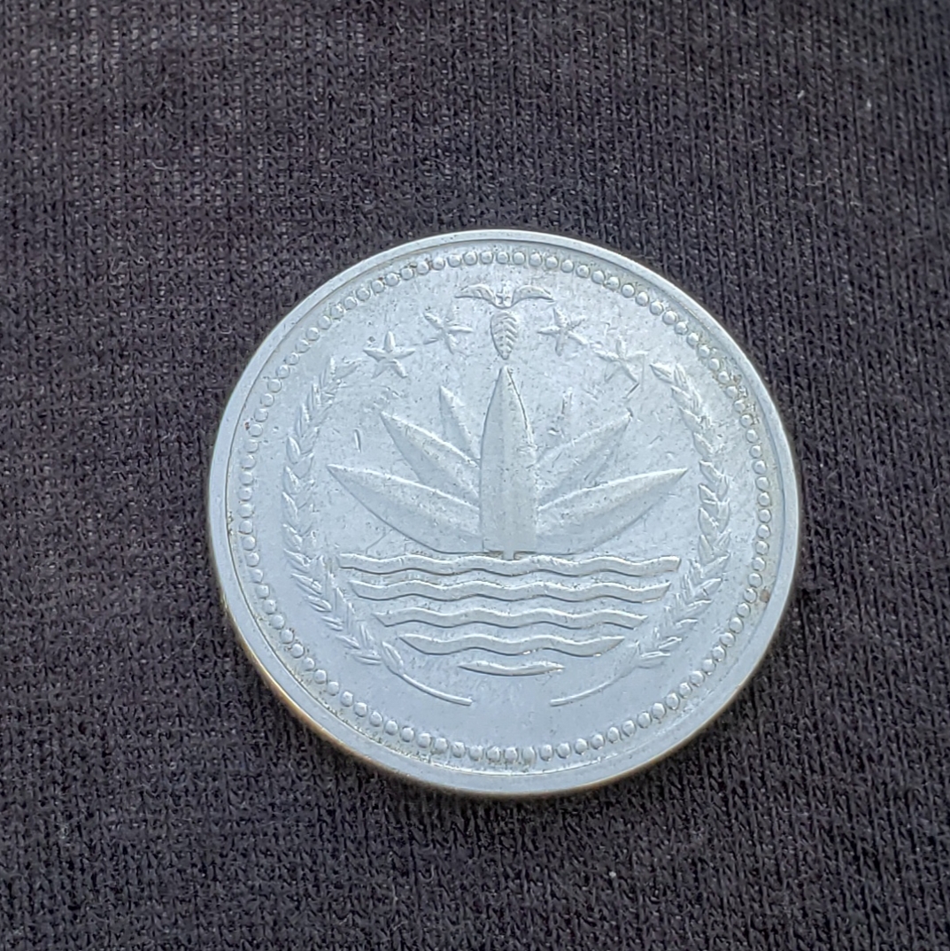 Neat find. Looks like a 1975-77 F.A.O. issue 1-taka from Bangladesh.