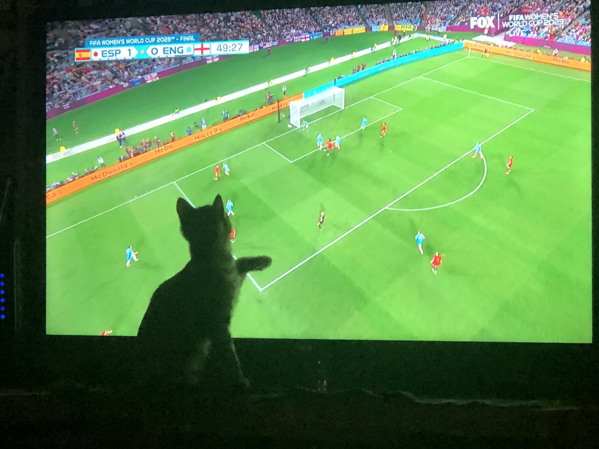 Thanks LordM for another great giveaway. I am continuing with my "ancient for an ancient" endeavor and opt for Lot #1. On another matter, here is a pic of TyeDye recently helping Spain win the World Cup. I'm not sure she was really supporting Spain over England as much as she was just excited about being part of the game.