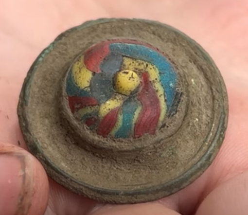 Here's one thing that I did find, that you can probably see at the Vindolanda Museum! It's a 4th Century metal and glass Brooch. And, the clasping mechanism on the back was still in tact, and operable! It's dirty, here, but they'll clean it up before putting it in the museum. Hope to go back and see it there some day!