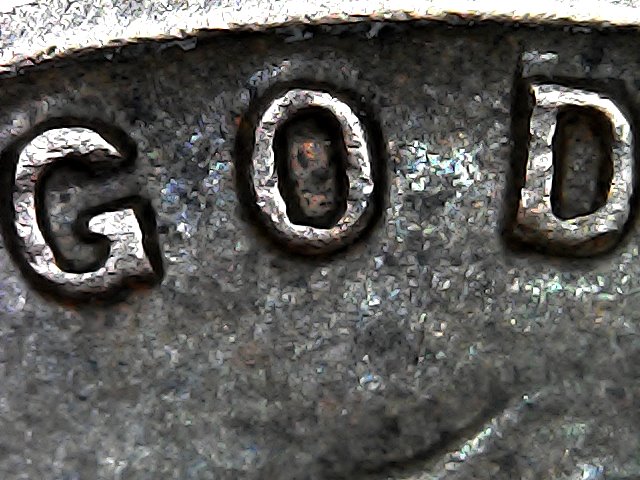 Right... Why on earth would the US Mint put a clown face in the O of GOD.. Think about it ... It's nothing but pareidolia, as stated