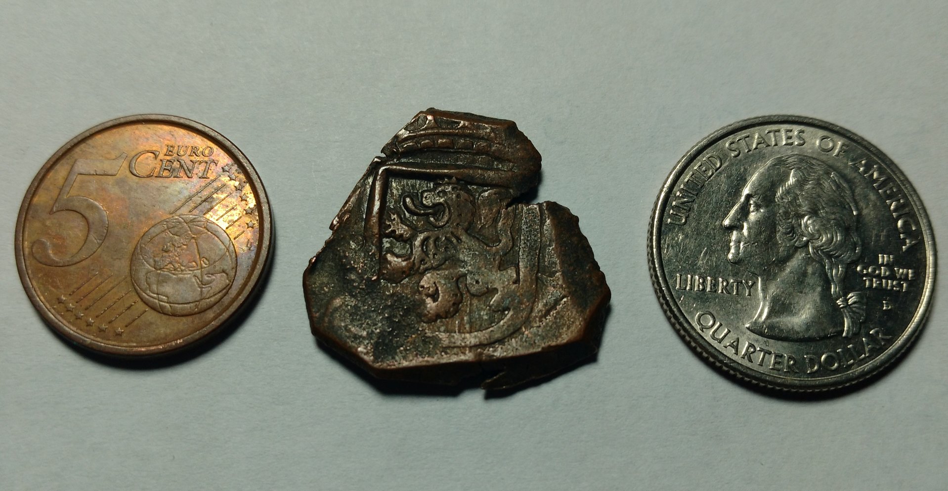 Size does matter I guess... If your 4 maravedis is the size of a nickle and this is the size of a quarter, I'm extrapolating that the entire design on this one would be half-dollar(+) sized. <shrug> Krause is a bit lacking in photos in that section. Alas. Not in the UK, although university was Oxford and London. I'll buy you a pint and bore you with my tales.