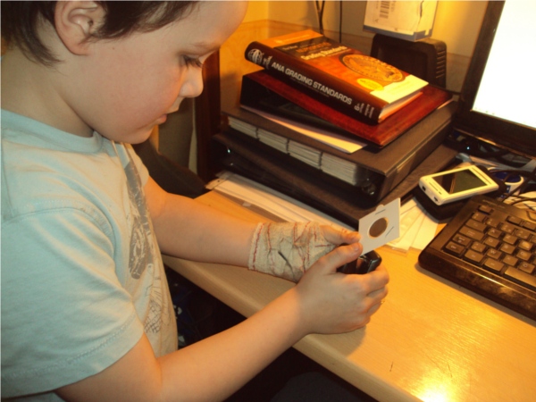 My oldest (son - almost 5) has gotten into collecting "like my daddy". We went to a coin shop recently and bought a Lincoln folder (1941-1974), a late series State's quarter folder and I gave him an extra Buffalo nickel folder I had around. I am just letting him fill in the holes as he wishes right now, and I give him extras from my hoard (common wheats, per-60 Jeffersons, etc). We went to another coin shop yesterday for my birthday and I picked a nice 1935-s Peace dollar and he got a 1938-d Buffalo for his collection. He was very excited. I hope he continues his interest into the future which I will certainly foster. I was the the first serious coin collector in my family, but I wish my father had been one - since he grewup in the 1950s and was in his mid-20s during the silver/clad switch in 1965. He probably could have had a decent collection.