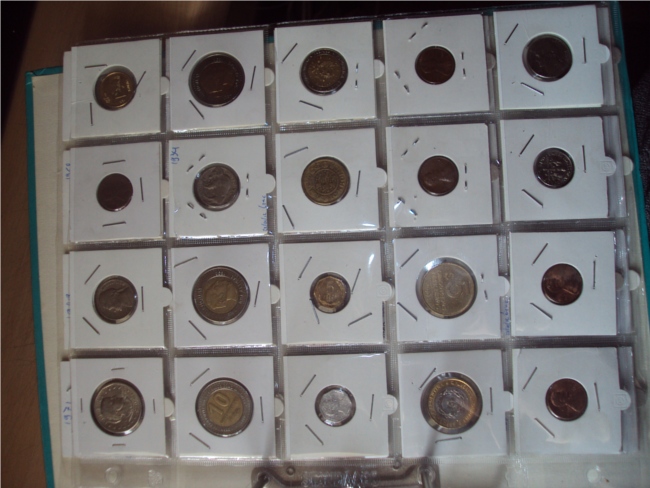 he is doing good. He has 44 coins now from all over the world. I let him do with it what he wants, and i let him place then in the 2x2's himself (as you can see the way they are stapeled ) I have about 20 more coins put aside for him, and het gets some of them every day. (it is mostly the first thing he asks when he gets from school, "dad, are there some new coins for me?") At the moment he does not realy sort them by date or country, but when he wil get older and can read a bit i will try to make him do that, but as said before, i let him do with them what ever he wants to do with them. Think that is the best way for him to learn. his coins so far: