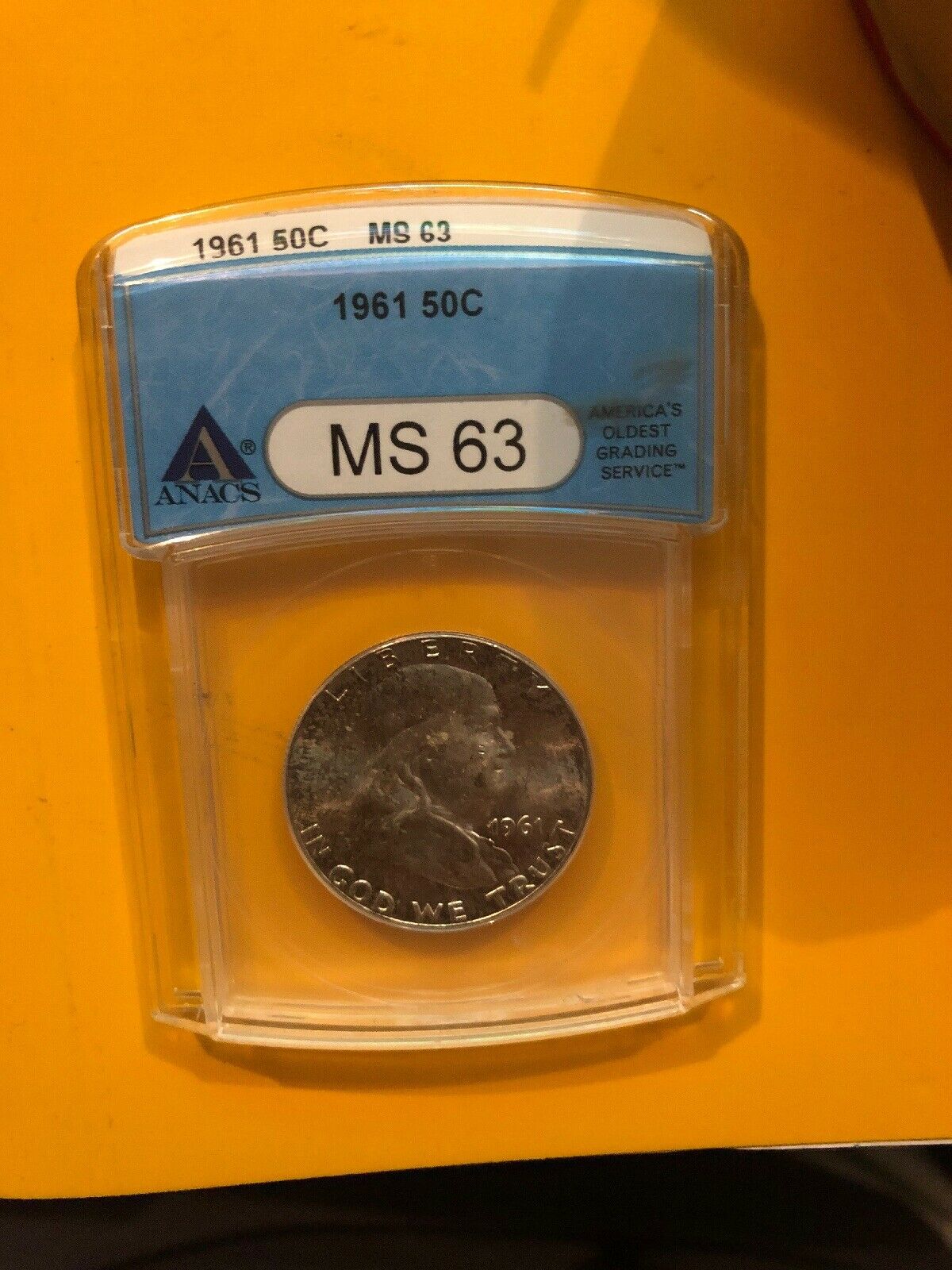 The blue holder is the one that came before the yellow label holder ANACS uses now, so it's not too old. Right here is the holy grail of coin holders, if you're into that thing (not mine, just a pic from the internet):