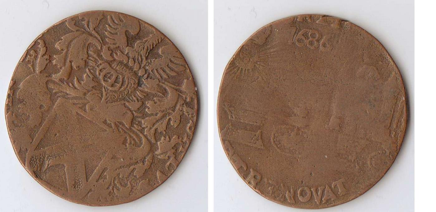 I have a few coins here that are outside my usual realm of collecting and I need some help figuring out what they are. The first is dated 1686. It is strange because it almost looks like it's a bigger design that doesn't fit on the metal. There are traces of words along the edges but most are cut off. If it was cut after the fact, it's strange because it's mostly round. The secon is Islamic. I read the date as 1289. I'm not sure offhand but I think that's in the 1870s or 1880s. I can't make out a denomination. The third is from 1749, and I believe Holy Roman Empire. Would that make it Austria? It seems to be in an Austrian style. 1 kreuzer perhaps? I make out the words. Francisc D G Rom Imp S A - Francis by the grace of God Roman Emperor. On the back letters look like Mon nom RE__BREM.