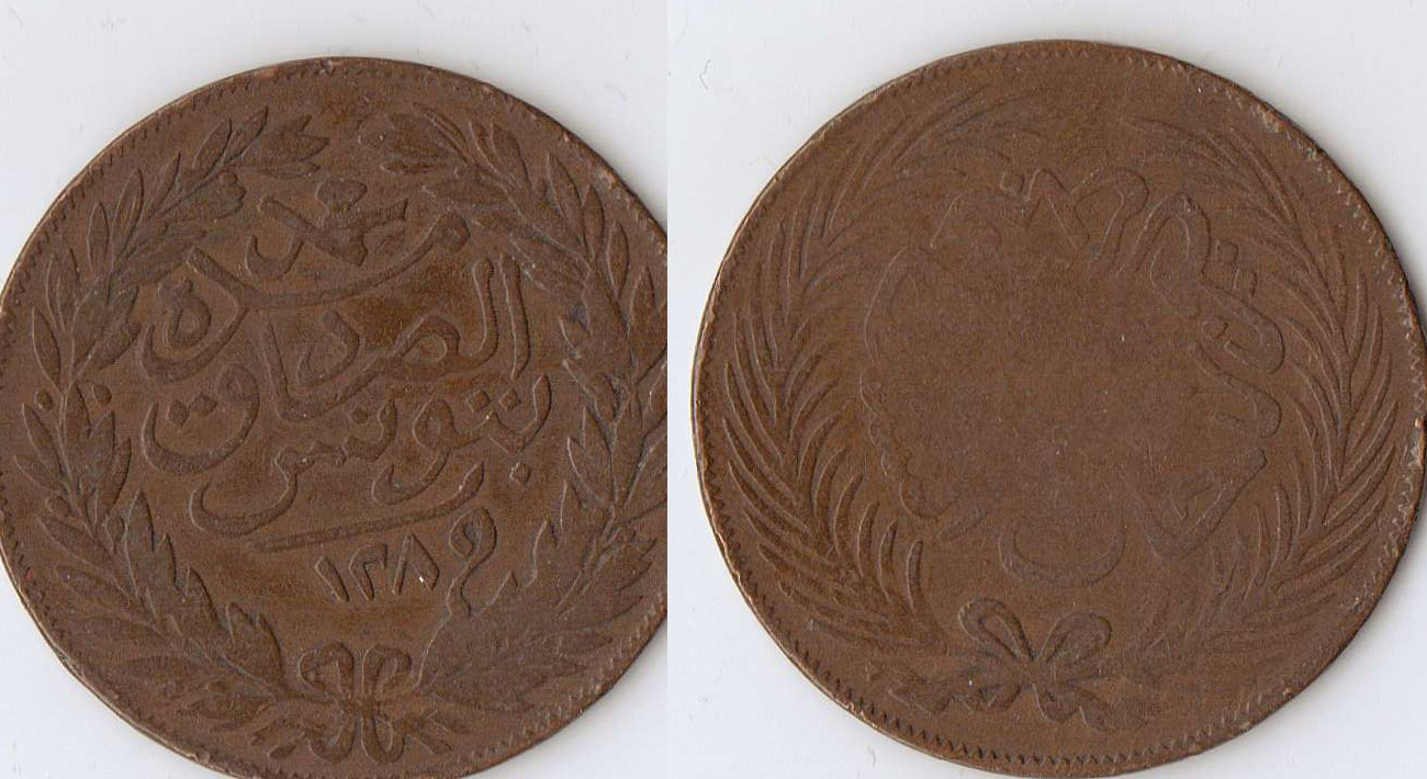 Here's the first one: PAYS-BAS MERIDIONAUX, Cu jeton, 1686, J.B. de Visscher de Celles. Droit : IN CRVCE SALVS Ecu heaumé. Revers : ORITVR ET RENOVAT Un palais et des jardins éclairés par un soleil radieux entouré d'un C couronné. Ref.: Dugn., 4516. 6,13g. Dim: 30 mm. http://www.mcsearch.info/record.html?id=501692 And the second one (similar): Tunisia, 1872 AD., Ottoman empire, Sultan Abdul Aziz with Muhammad al-Sadiq Bey, Tunis mint, 2 Kharub, KM 174. Tunisia, Ottoman empire, Sultan Abdul Aziz with Muhammad al-Sadiq Bey (AH 1276-93 / 1860-76 AD.), Tunis mint, AH 1289 = 1872 AD., 2 Kharub (31,5 mm / 12,17 g), copper, Obv.: ١٢٨٩ , "Sultan Aabdelaziz Khane", horizontal Arabic legend and date within wreath. Rev.: , circular Arabic inscription surrounded by a wreath. KM 174 . http://www.arminius-numismatics.com/coppermine1414/cpg1414/displayimage.php?album=184&pos=67 And the third one (similar): German States. Free City of Bremen. Silver Groten 1750. FRANCIS I G.ROM.IMP.S.A, crowned double eagle with value on breast / MON.NOV.REX.EM 1750, arms. http://www.forumancientcoins.com/gallery/displayimage.php?album=3947&pos=94 The fourth one is from Siam, 1 Satang 2469 (AD 1926)