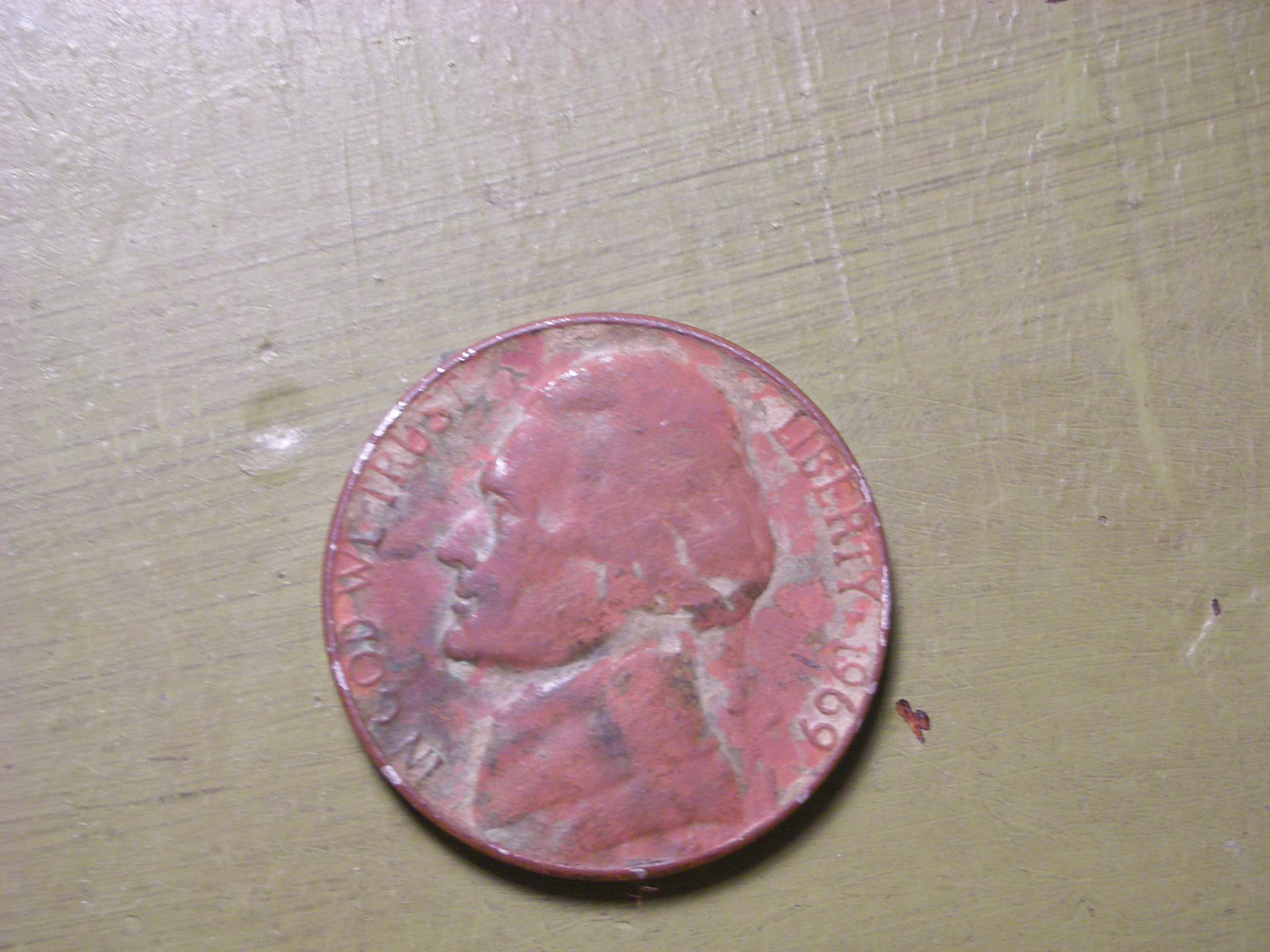 After finding this quarter ( http://www.cointalk.com/t207321/ ) in my change jar last night I decided to go through the rest of the coins in there. This is what i found. 1: 1996 nickel on the reverse the "mon" in Monticello is noticeably duller than the rest. In person it looks like it says "ticello" in the photo i tried to show to mon the best I could. Also the five is noticeably duller than cents. 2: Red 1969 nickel the obverse is red and the reverse is half red half brown and green. 3: 1975 dime on the reverse there is supposed to be "usu" between the torch and the branch. Only the "u" is there the "us is missing. I don't know if these are of any value but i thought they were interesting.