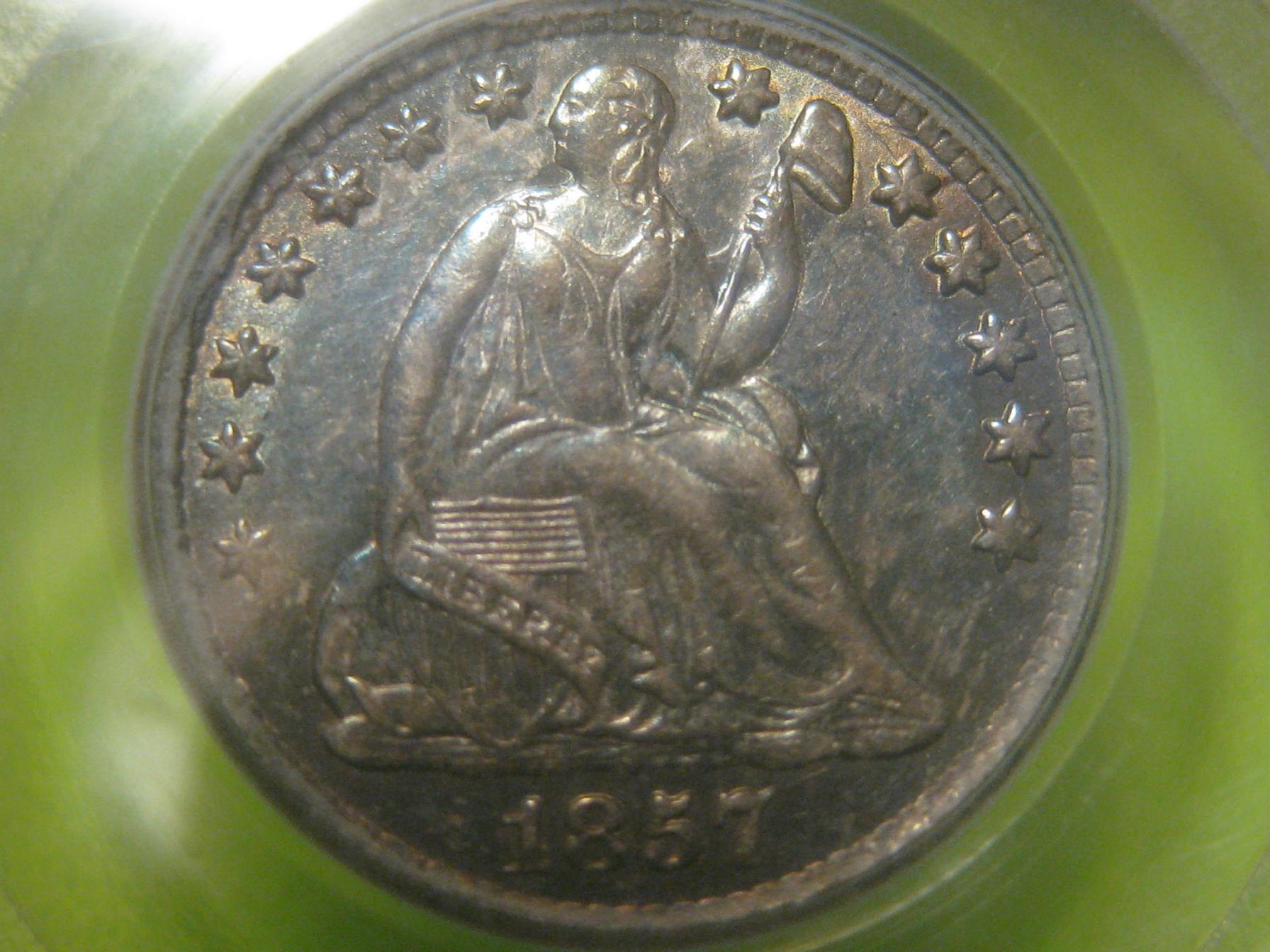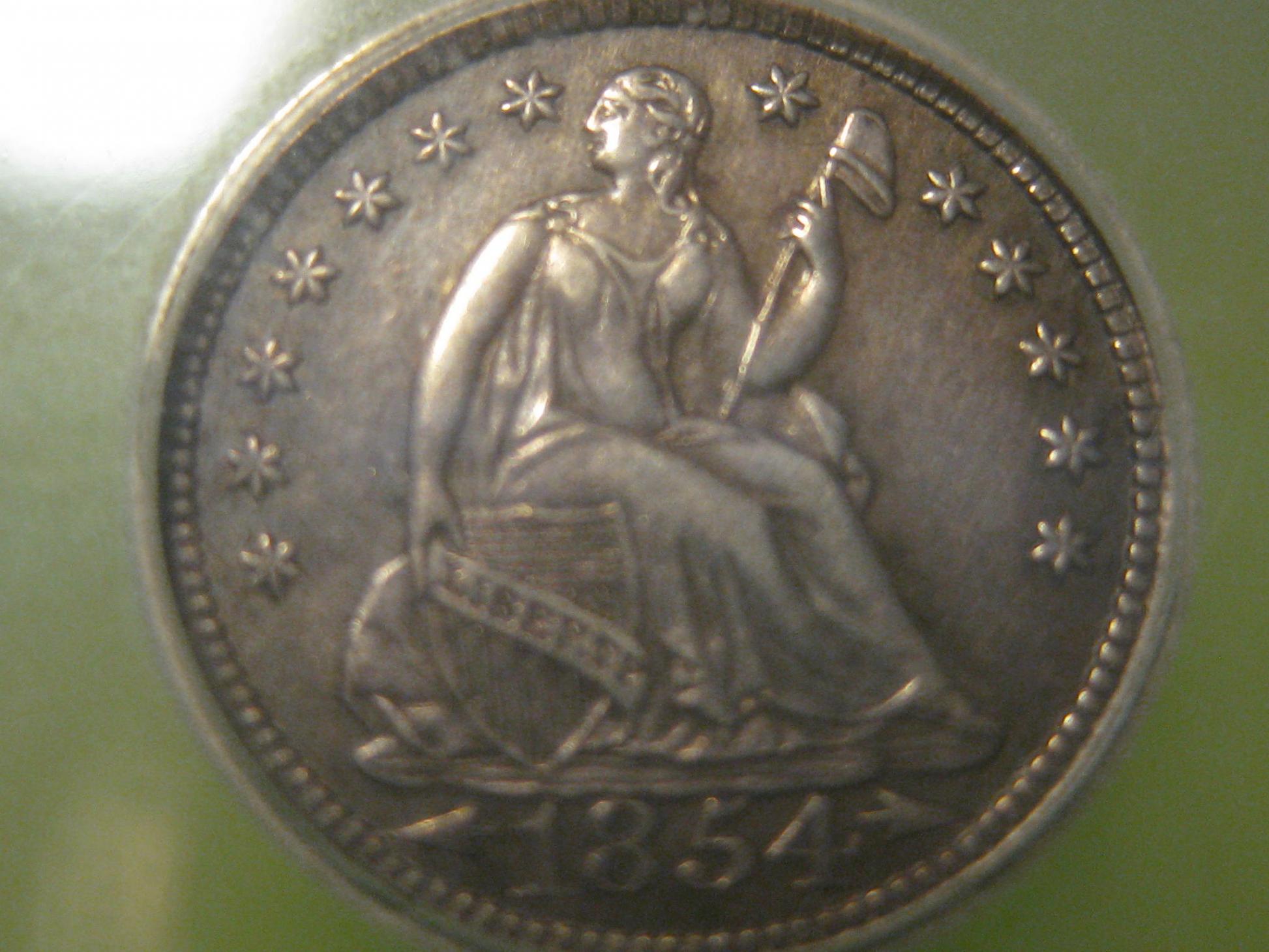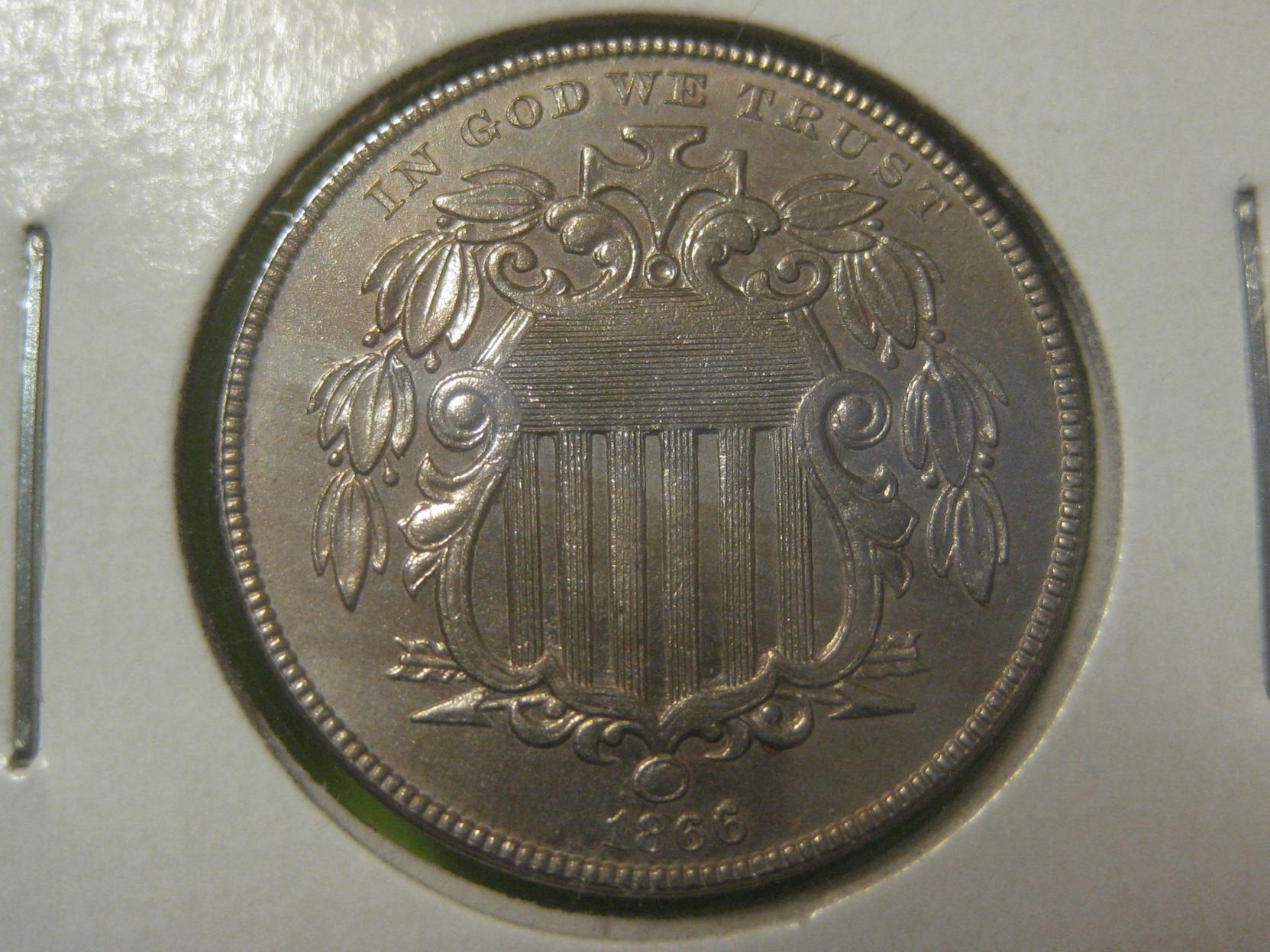 I just picked up a few things to bump up my type set. The pictures aren't the best and the coins themselves have issues but that's the kind I like. Slabbed MS69/70 is one thing, pocket change shows real coinage. it's like the difference between having a 1957 Chevrolet Convertable that you always leave in the garage and a 1957 Chevrolet four door sedan that you drive every day. Trailer queens don't impress me nearly as much as cars with honest use and wear. The first two are half dmes. The IHC is a No-L. The 1866 $0.05 is w/rays