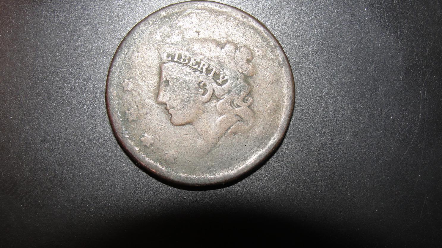 Saved the best for last! I grabbed this large cent for $3 out of the bargain bin. When I dropped my little bro off at Dad's I showed him my take, and he looked at this for a few minutes, then burst out laughing! I just may have found a new avatar! haha! I can't believe that I didn't notice it, and that my Dad DID! Oh, my sides ache from a great laugh after an awesome day at the coin show! Hope this thing isn't too 'offensive' for anyone. How many large........ cents........ did they make like this? Pretty sure I can make out the bottom of a 'large' 4 and a 0 so I'm thinking this is an 1840 Large Date